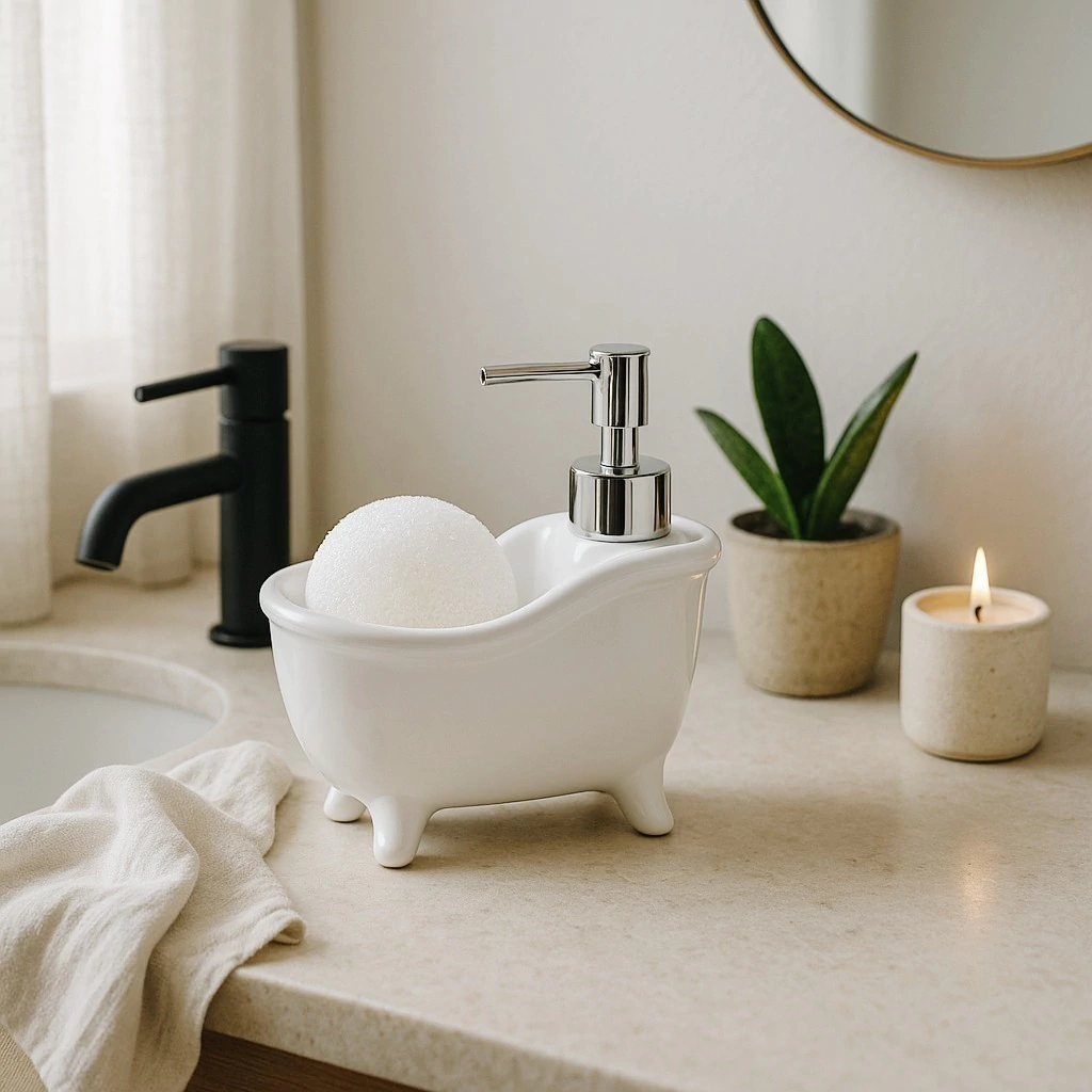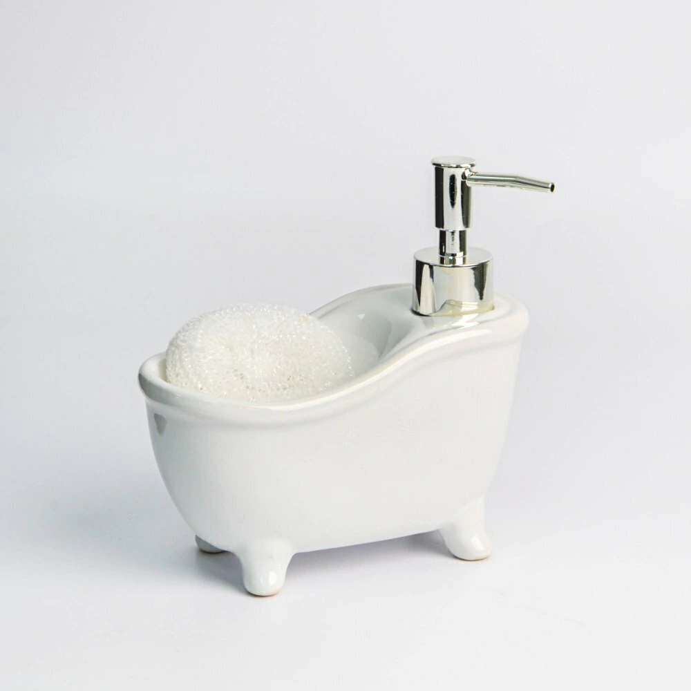 Añadí un toque sofisticado y práctico a tu rutina diaria. ¡No te quedes sin el Dispenser de Jabón Líquido Bañadera Blanco, el complemento perfecto para un baño ordenado y estilizado!