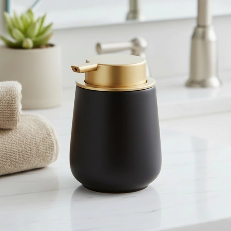 Descubrí el Dispenser Gold, un dispenser de jabón líquido de cerámica que combina sofisticación y practicidad. Disponible en dos colores atemporales, negro y blanco, este accesorio destacará con sus detalles en dorado que aportan un toque de lujo a cualquier ambiente.