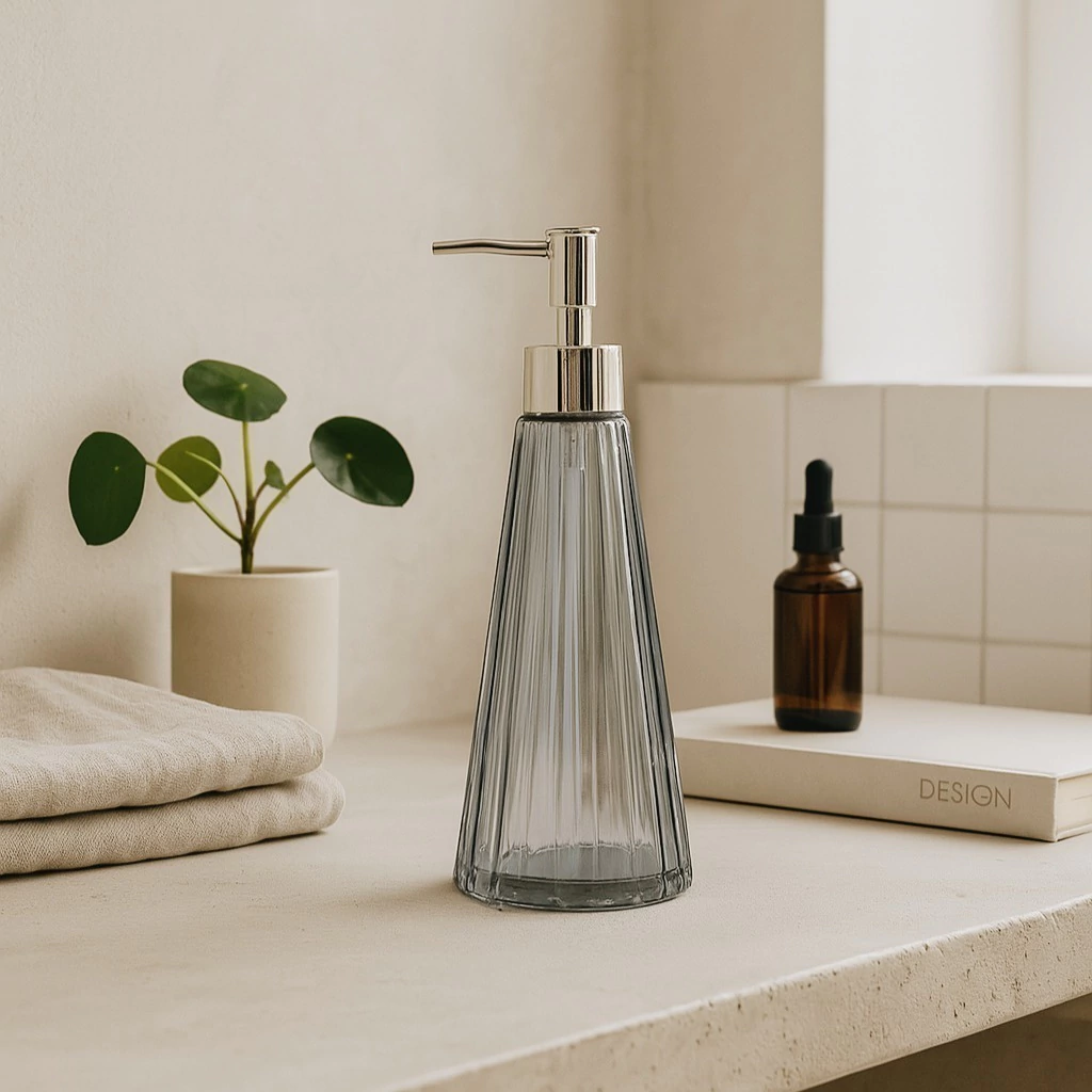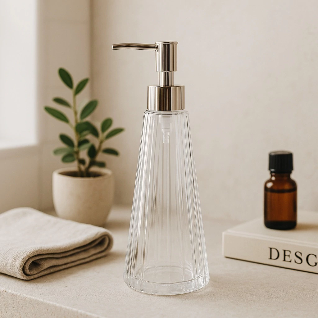 Conocé el Dispenser de Jabón Líquido Laurent, una pieza que combina estilo y practicidad. Este dispensador de vidrio, con un pico de plástico cromado, eleva la estética de tu baño o cocina a otro nivel.