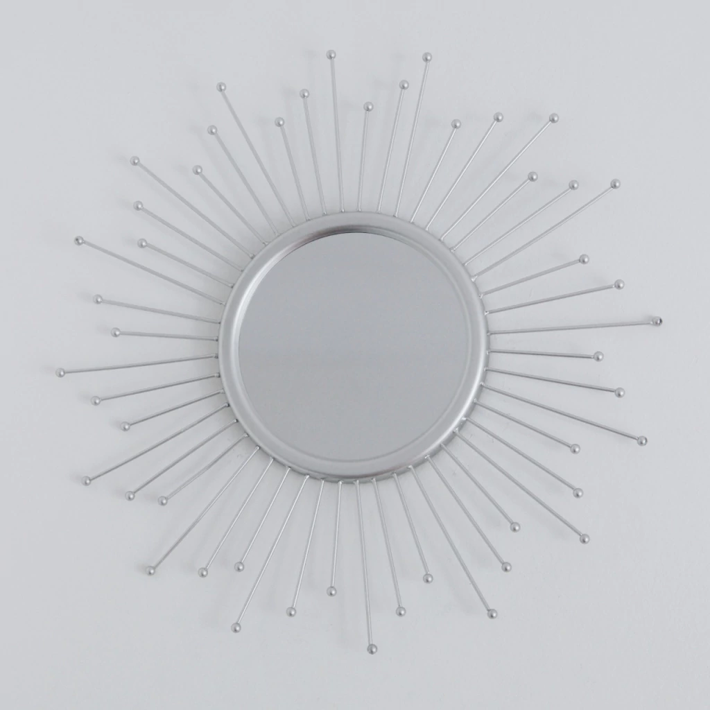 Conocé el Espejo Silver Sun, una pieza decorativa que va a iluminar y transformar tus espacios con su elegante diseño en forma de sol. Su marco metálico enchapado plateado le da un toque de sofisticación y modernidad, convirtiéndolo en el complemento ideal para cualquier ambiente.