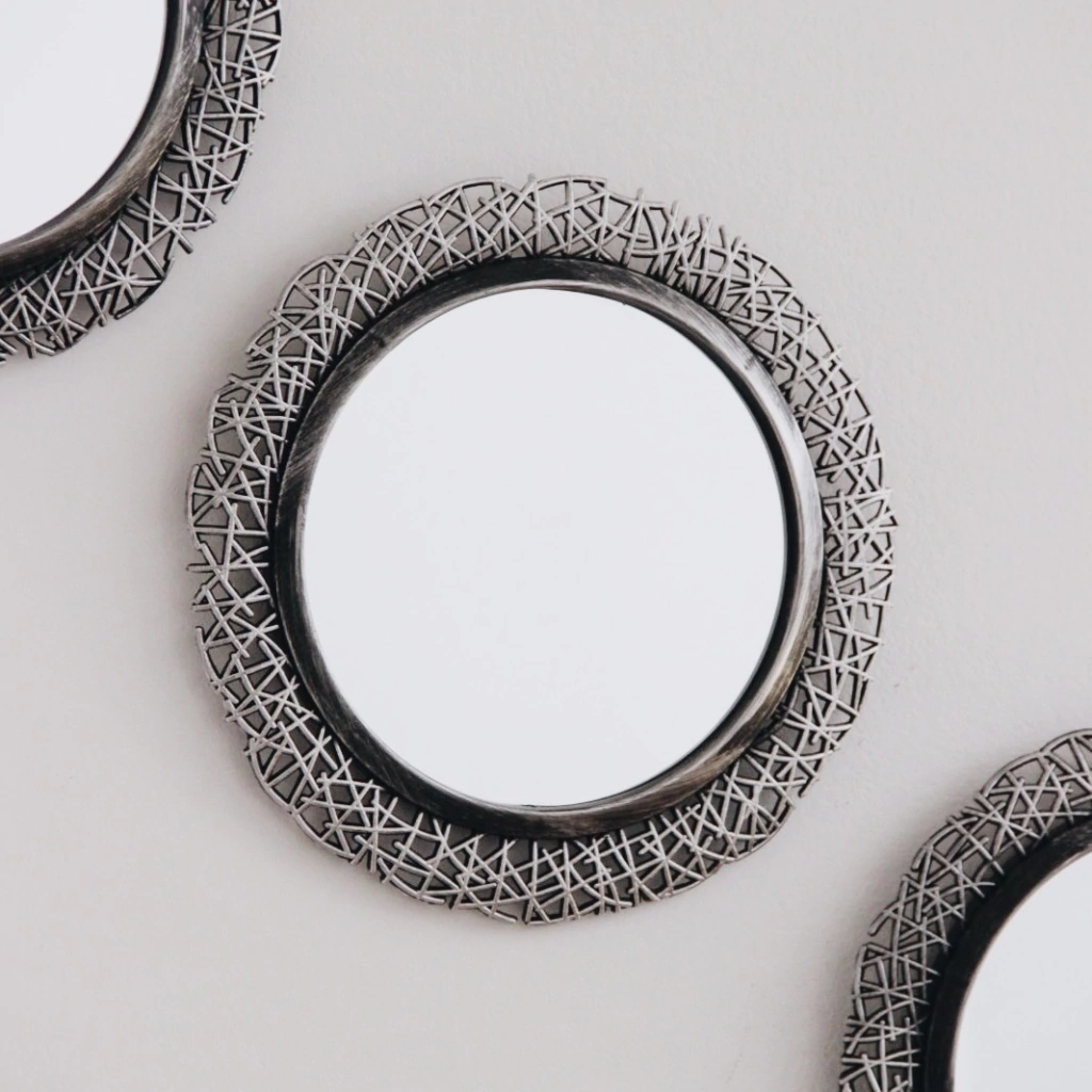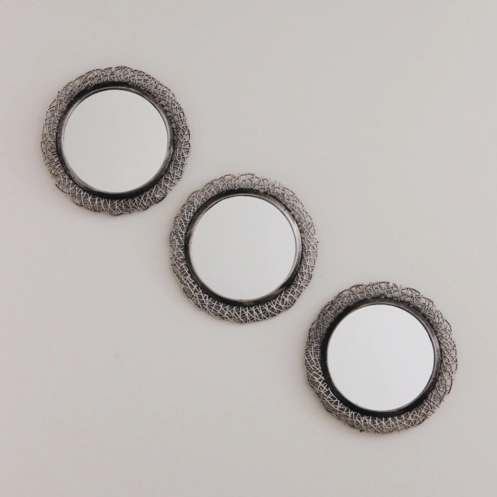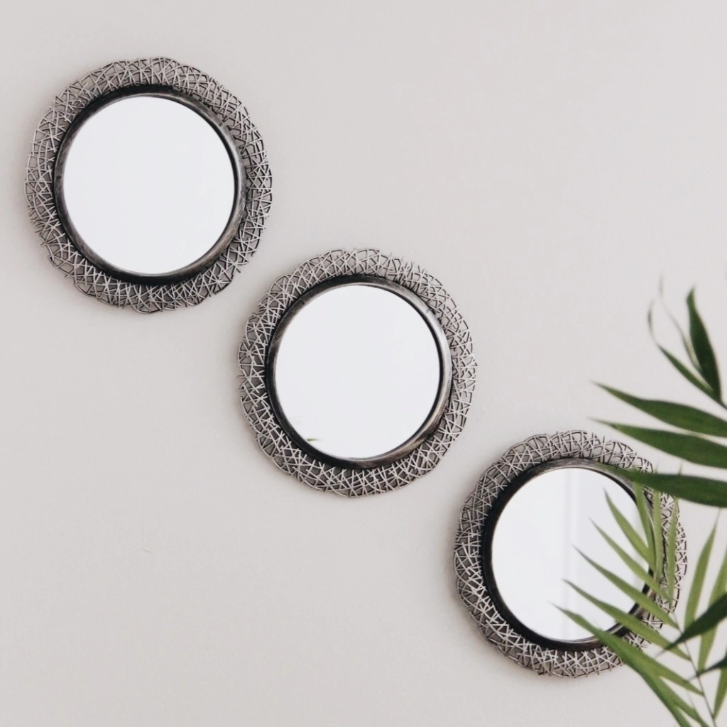 Set de 3 espejos de poliresina color plata