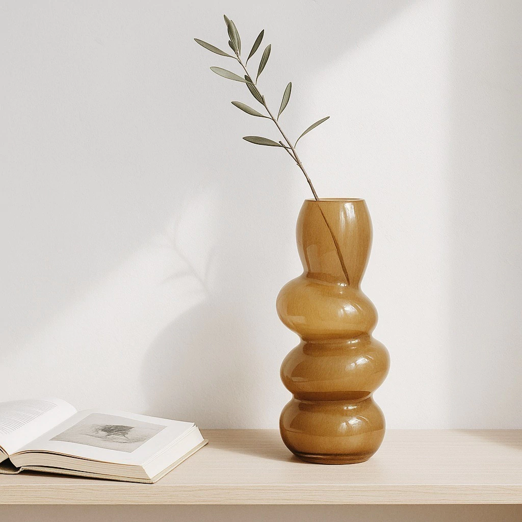 Florero Snail: Elegancia y Distinción en Vidrio Soplado Ámbar