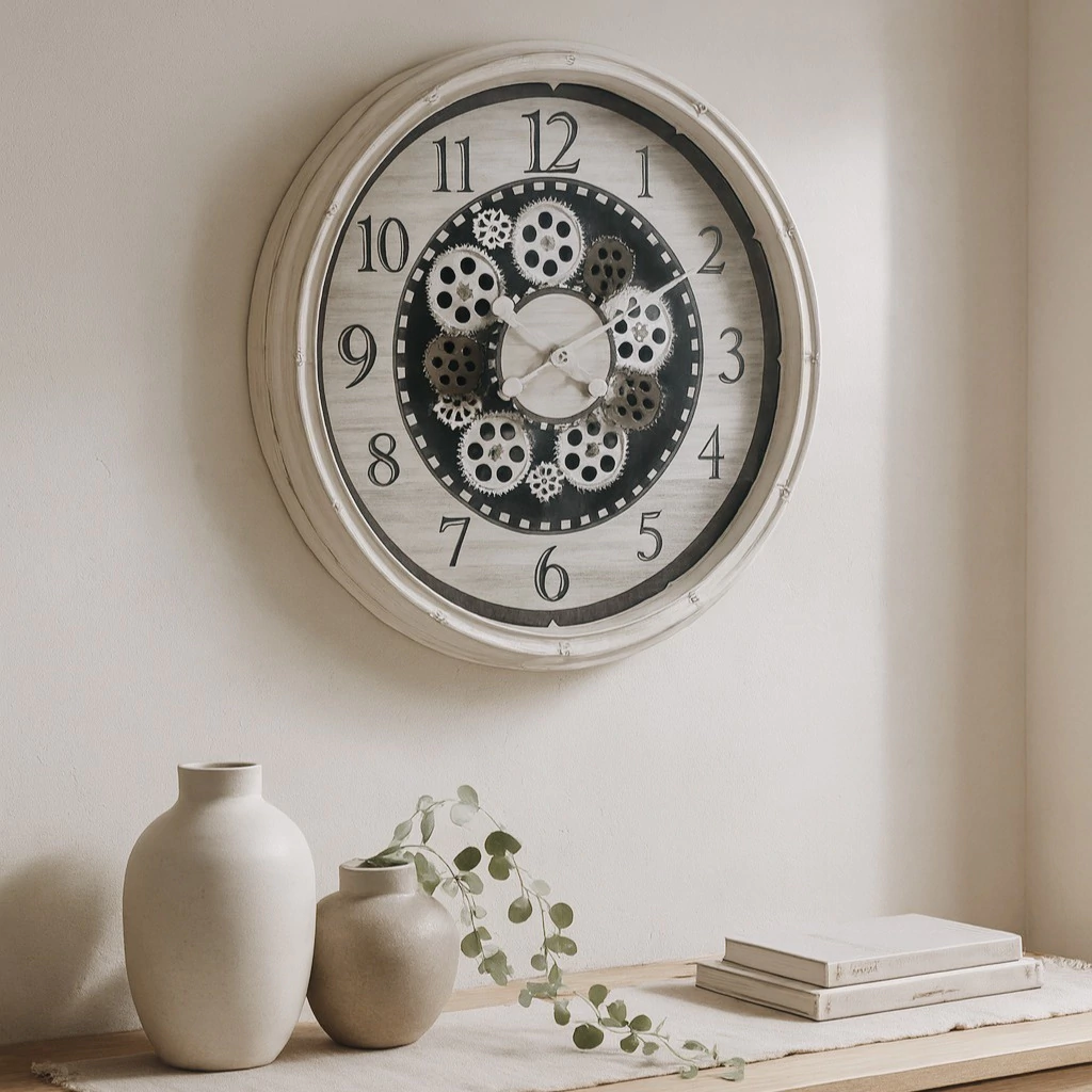 Dale vida a tus paredes con el Reloj Engranaje White y disfrutá de una pieza decorativa que combina estética y funcionalidad en perfecta armonía.