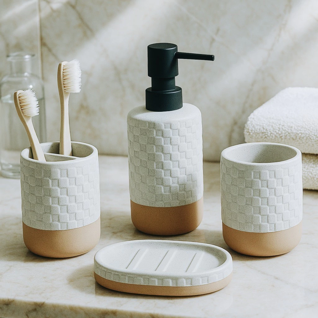 Transformá tu baño en un espacio de estilo y armonía con este set de baño de 4 piezas de cerámica blanca de alta calidad. Su diseño minimalista y sofisticado combina con cualquier decoración, aportando un toque de frescura y orden.