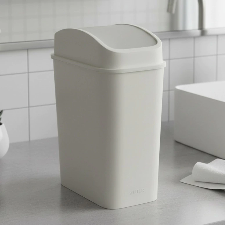 Con una capacidad de 9 litros, es perfecto para baños, cocinas o escritorios donde el espacio es limitado pero la limpieza es esencial. Su tapa vaivén facilita el uso diario, permitiendo desechar residuos con comodidad y sin contacto directo.